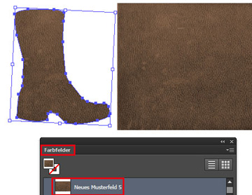 Ich wähle das Leder-Foto an und ziehe es in meine Illustrator Farbfelder um ein neues Musterfeld zu erstellen. (Menü > Fenster > Farbfelder)