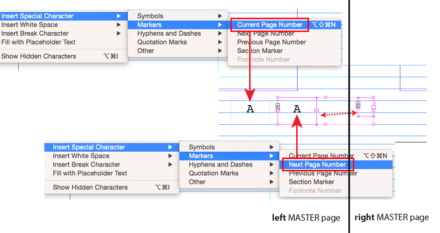 4. For the pagination referring to the right page (the other master page) choose Next Page Number.