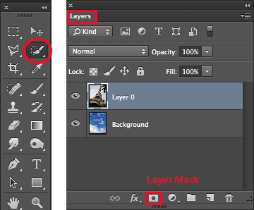 2. Once your old sky on the top layer is selected, simply click on the “Layer Mask” icon.