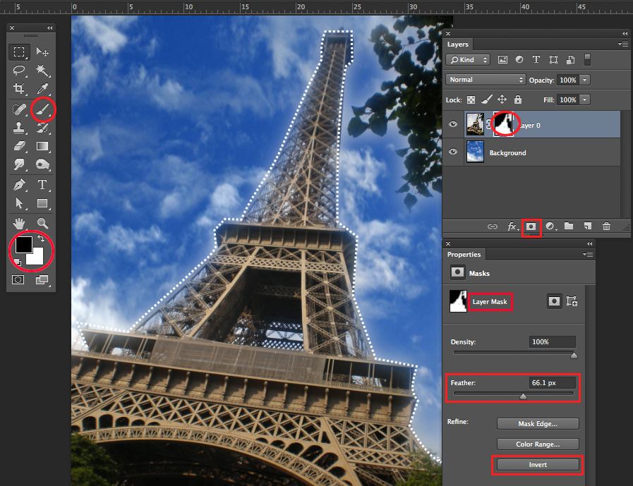 Tip 1: With the Brush Tool you can easily make changes to your Layer Mask: Simply select the Layer Mask and paint with the Brush Tool using either Black or White directly inside the Layer Mask, until you’re happy with the result!