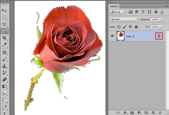 Open your file in Photoshop and click on the lock changing the background layer to Layer 0.