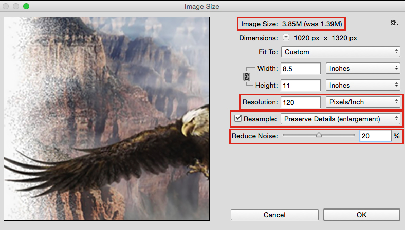Once you’re happy with the preview: HIT OK! But don’t forget: enlargements over 150% will pixelate more and more… especially if you sharpen the image later.