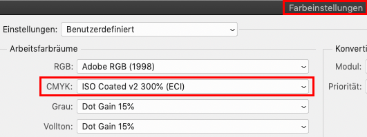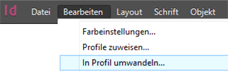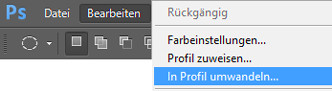 Wir beginnen mit Menü > Bearbeiten > Farbeinstellung und wählen das gewünschte Druckprofil: