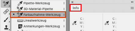 Farbaufnahme-Werkzeug wählen und das Info-Bedienfeld öffnen: