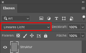 In der Ebene “Struktur” beim Mischmodus “Lineares Licht” wählen um den Hochpass zu testen.