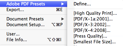 3. Go under FILE > Adobe PDF Presets > Press Quality