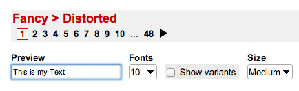 2. In unserem Fall ist die Schrift von der Kategorie > Fancy > Distorted. Sie können Ihren Text ins PREVIEW Feld tippen um eine Vorschau zu sehen.