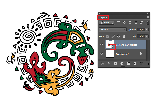3. Klicken Sie auf OK um die Platzierung zu bestätigen. In Ihren Ebenen finden Sie nun Ihr Smart Objekt als kleines Icon. Wenn Sie auf dieses Icon klicken, öffnet sich das Original Dokument wieder in Illustrator.