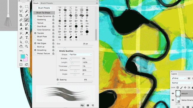 In my illustration below, I’ve used my own brushes which I created myself in Adobe Illustrator CC: Step-by-step-Information.